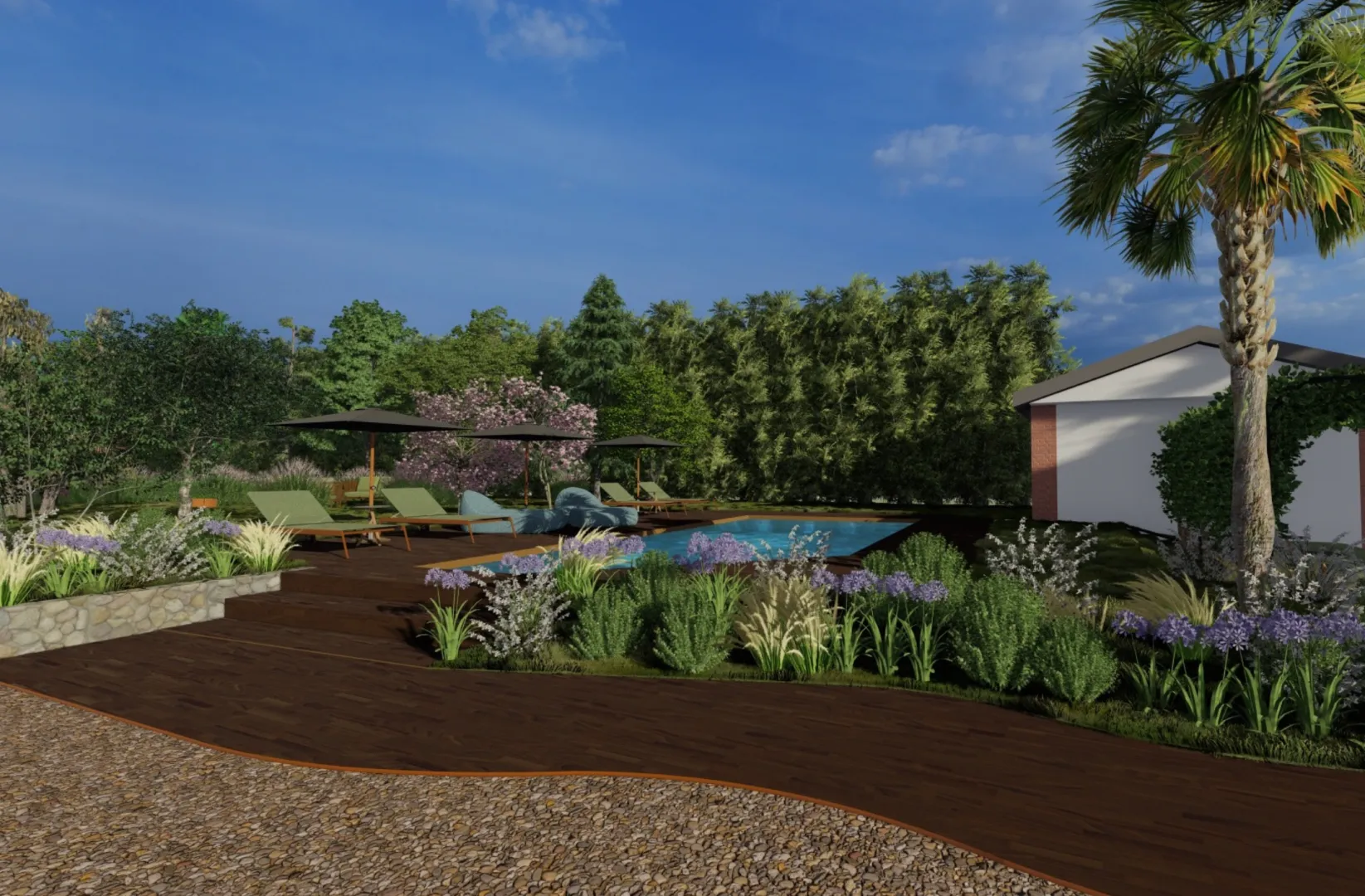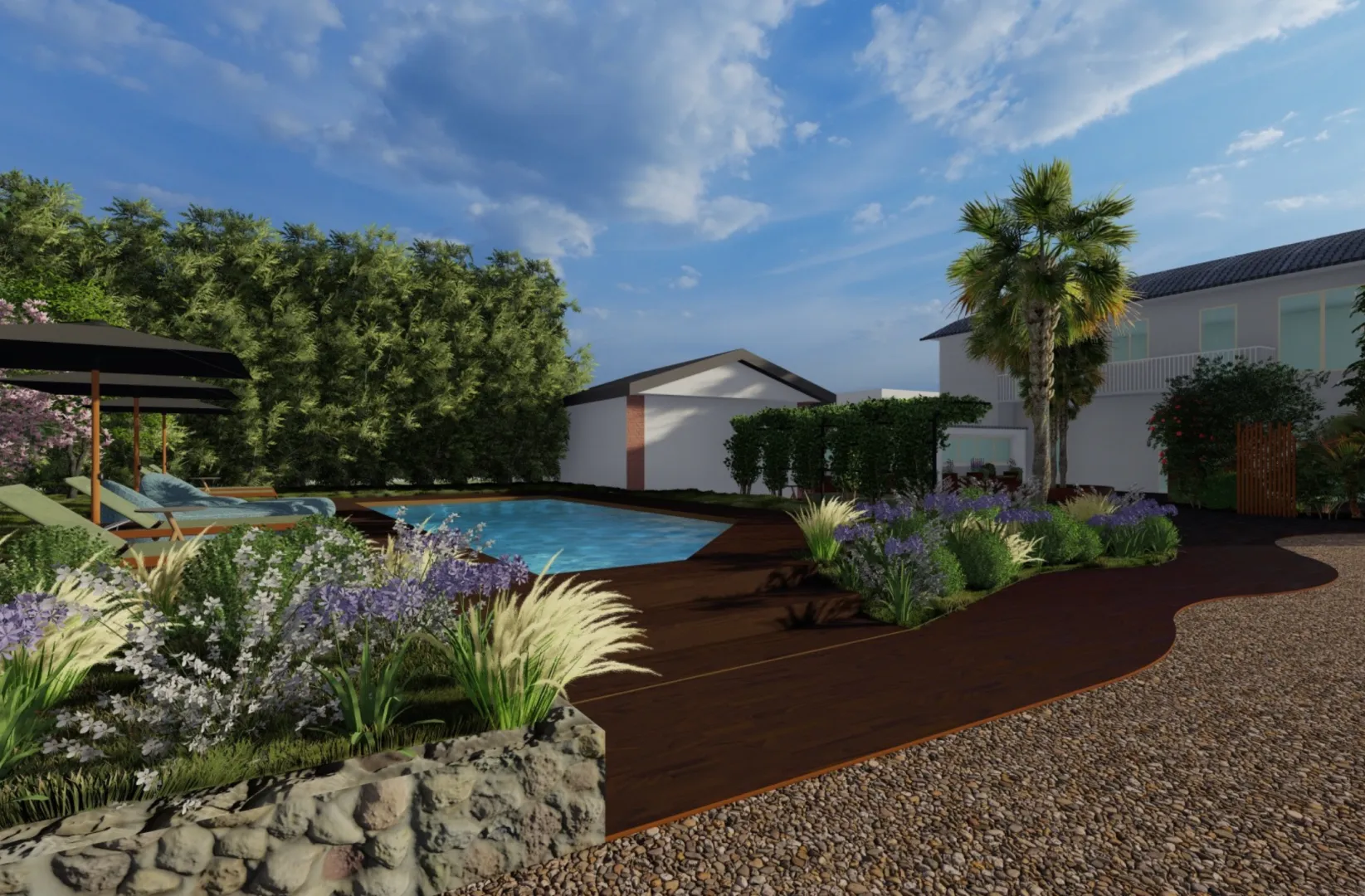 Alle porte di Torino nasce un B&B che ha l'ambizione di mettere insieme la quieta della natura con le comodità della città, per offrire ad una clientela di lusso un luogo riservato e confrotevole. Per questo progetto abbiamo pensato a spazi comuni che rispettino l'esigenza della privacy e a spazi privati nei quali ritirarsi e prendersi un po' di tempo tutto per sè. Il progetto del verde è costruito intorno all'esigenza di abbracciare il visitatore, offrendo coloriture in ogni periodo dell'anno, avendo nel contempo basse esigenze idriche e un impatto ridotto in termini di manutenzione da parte dei gestori.
