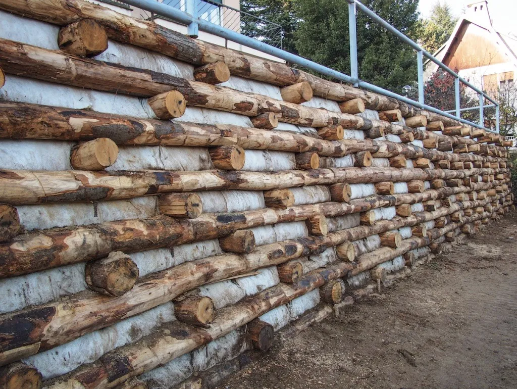 La palificata è una struttura che consiste in tronchi disposti, in livelli sovrapposti o singoli, a formare una “gabbia” di contenimento per il materiale inerte di riporto ed il vegetale. Viene inserita alla base di scarpate e pendii soggetti a dissesto, anche in presenza di spinte interne che comunque devono essere valutate e compatibili con i limiti funzionali della struttura stessa.