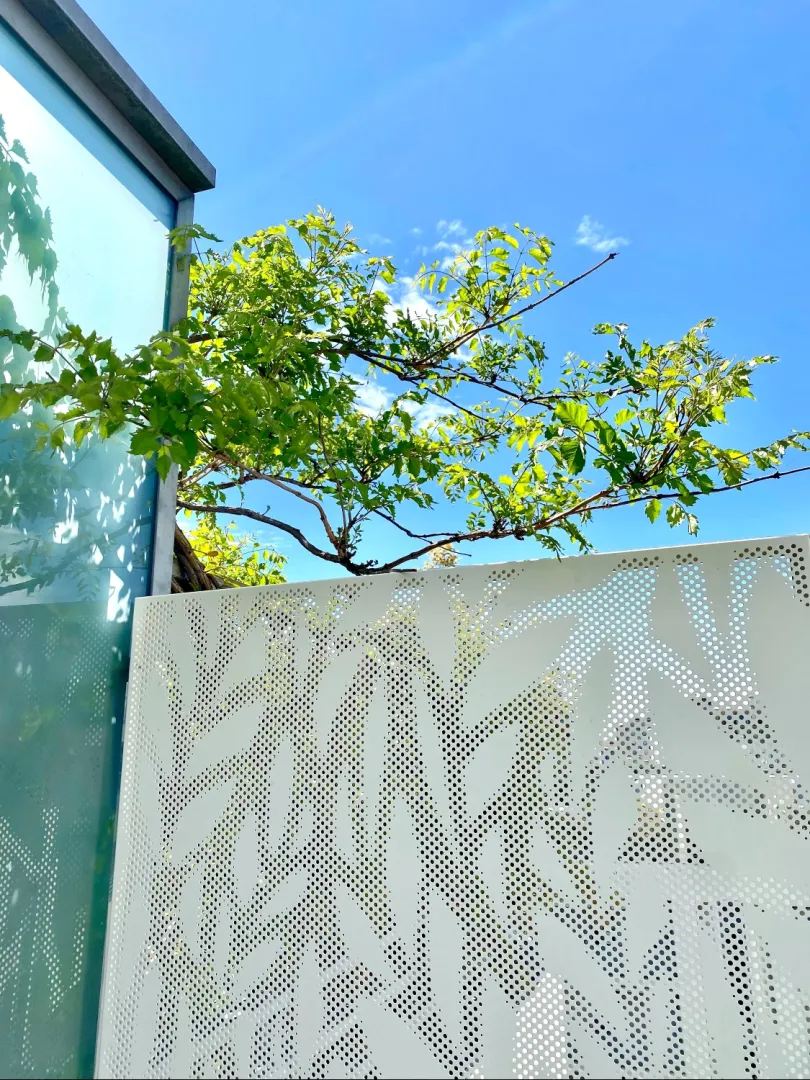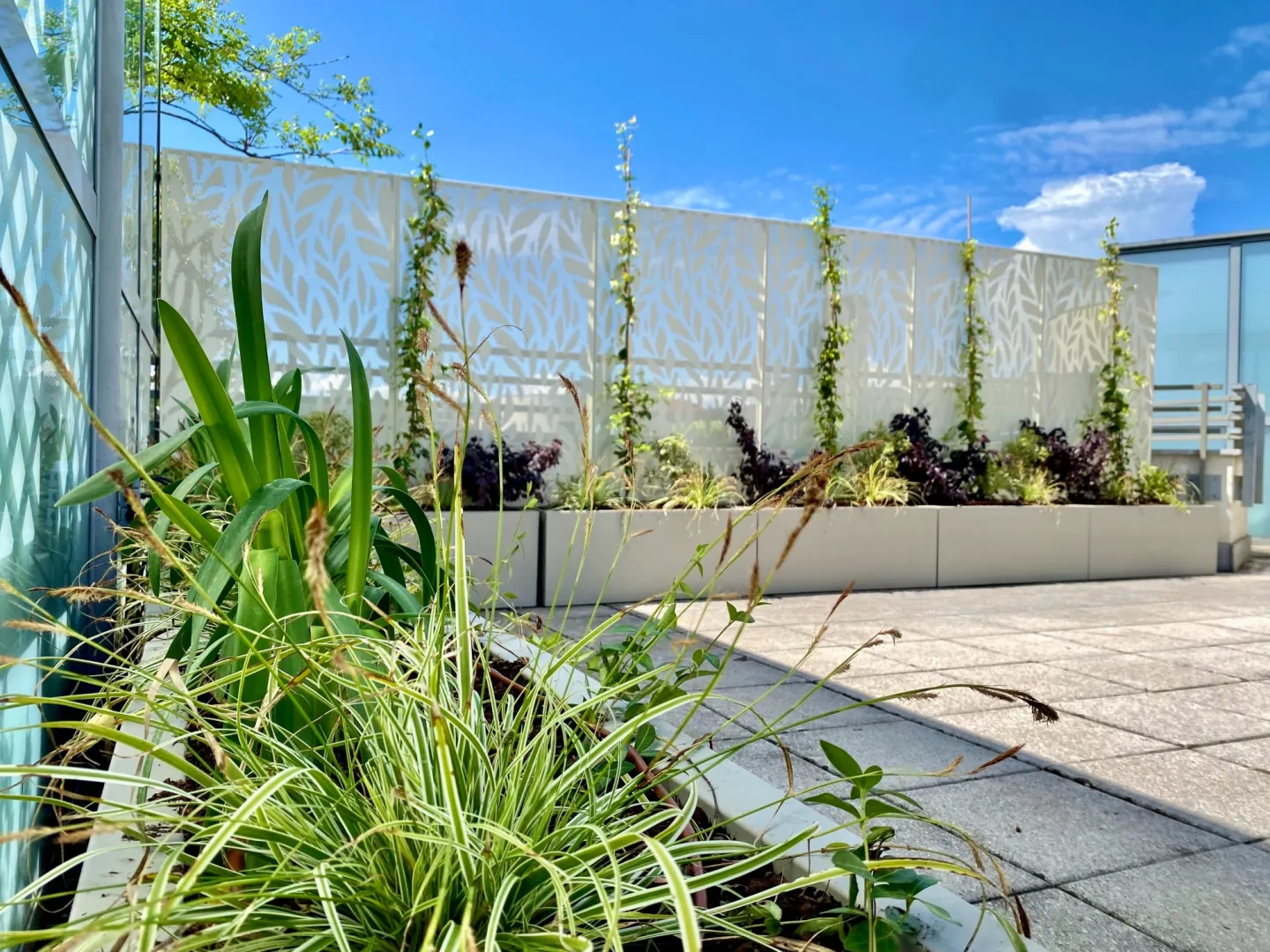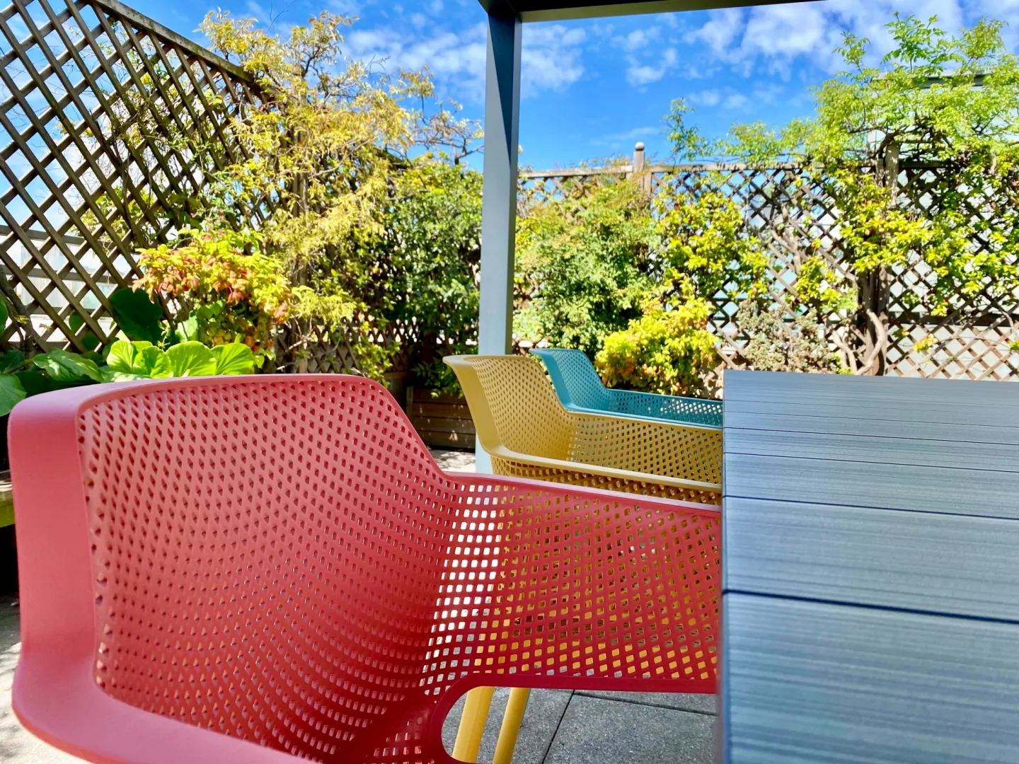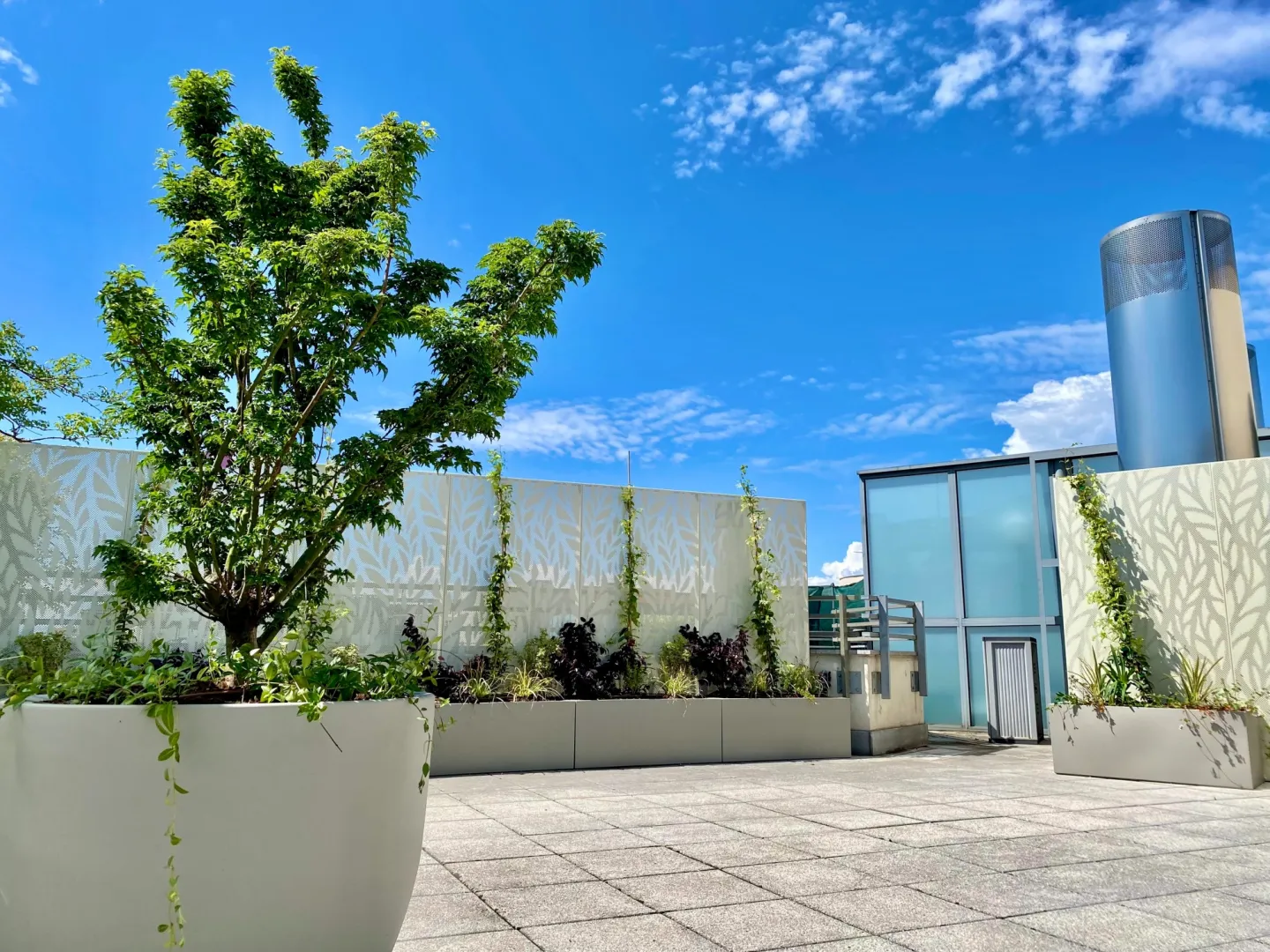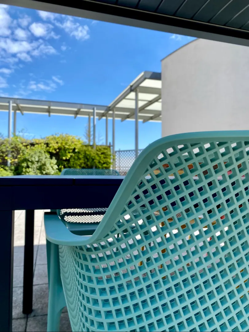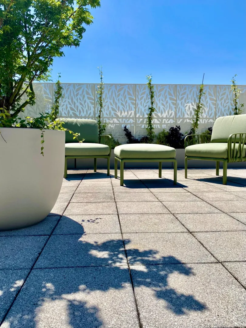 Un terrazzo di grandi dimensioni è sempre un'opportunità ma è anche un vincolo ed è con questi due aspetti, questo dualismo, che abbiamo dovuto misurarci insieme al cliente per dare nuova vita ad un'area importante della casa, altrimenti poco sfruttata. Abbiamo lavorato anzitutto sul perimetro, perché anche se il terrazzo è all'ultimo di nove piani, esisteva un tema di privacy da salvaguardare. Per questo abbiamo valorizzato le strutture già esistenti, ripensando la copertura verde, e creato nuove zone protette facendo ricorso a dei pannelli frangivista in lamiera microforata. Abbiamo poi creato una zona Living, di prossimità alla zona di accesso al terrazzo, dove abbiamo collocato una pergola bioclimatica che garantisse ombra d'estate e un'adeguata protezione nelle stagioni meno calde. Gli arredi sono stati una scelta importante. Per questo progetto abbiamo sposato il mondo Nardi, giocando con i colori delle sedie per la zona living, e creando un'area relax sfruttando la flessibilità della linea Komodo per i divani e le poltrone. Per le piante abbiamo scelto prevalentemente essenze sempreverdi, per donare un colore costante allo spazio.