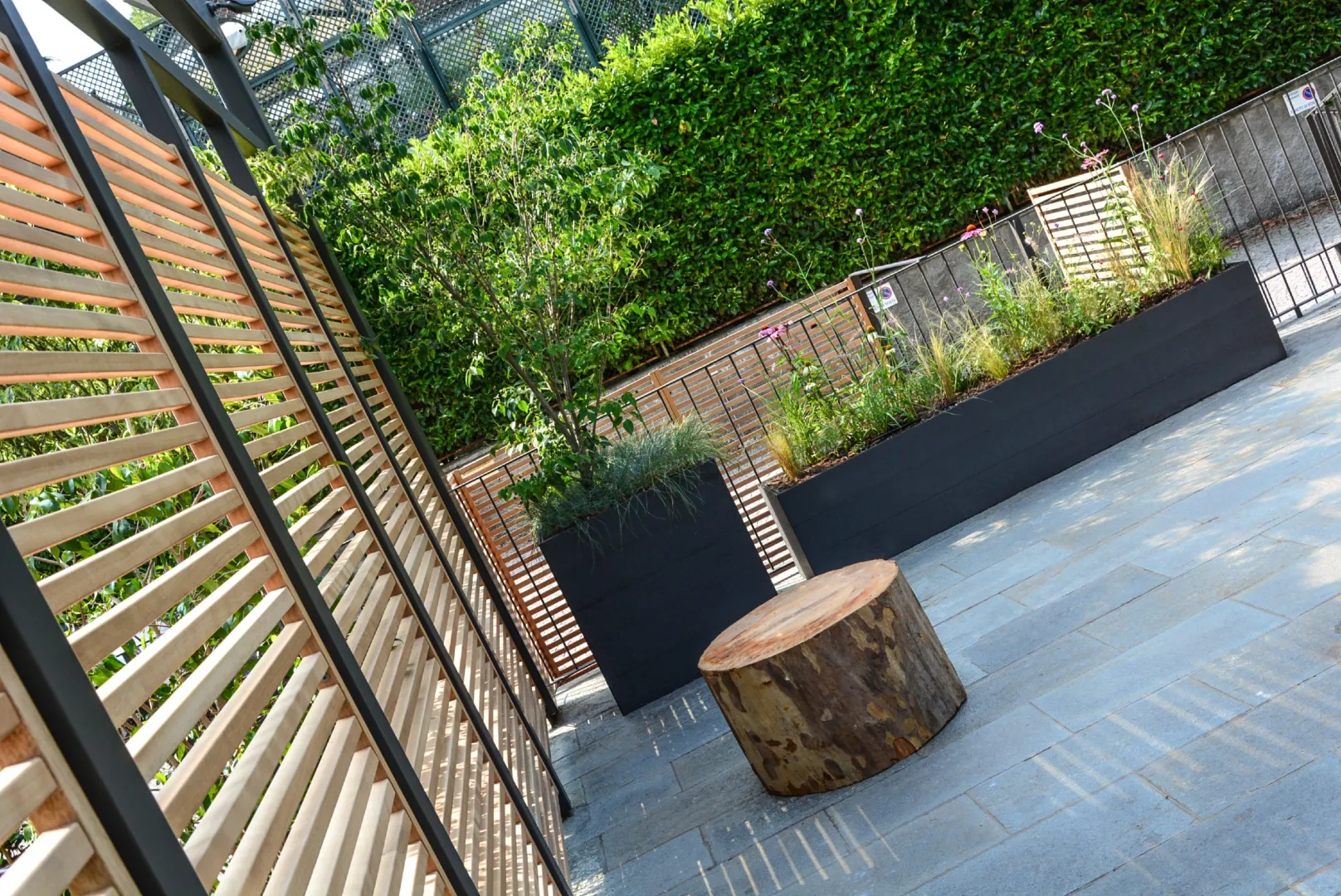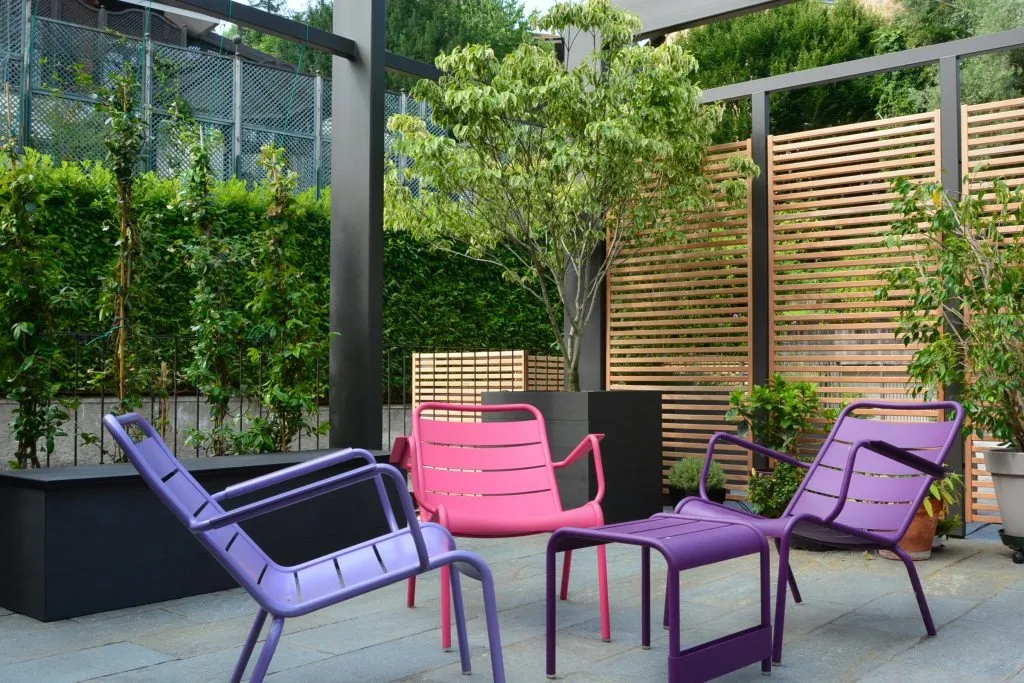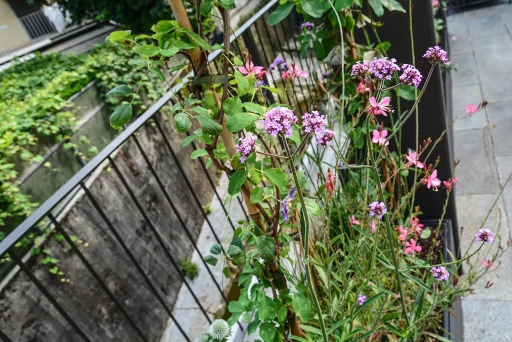 In questo bellissimo spazio esterno di uno studio di architettura abbiamo creato delle fioriere e inserito la vegetazione in armonia con la struttura della pergola esistente. Abbiamo giocato con colori vivaci e texture fogliari differenti. I punti focali sono stati valorizzati da esemplari arbustivi e arborei di terza grandezza che dessero risalto allo spazio anche in altezza.