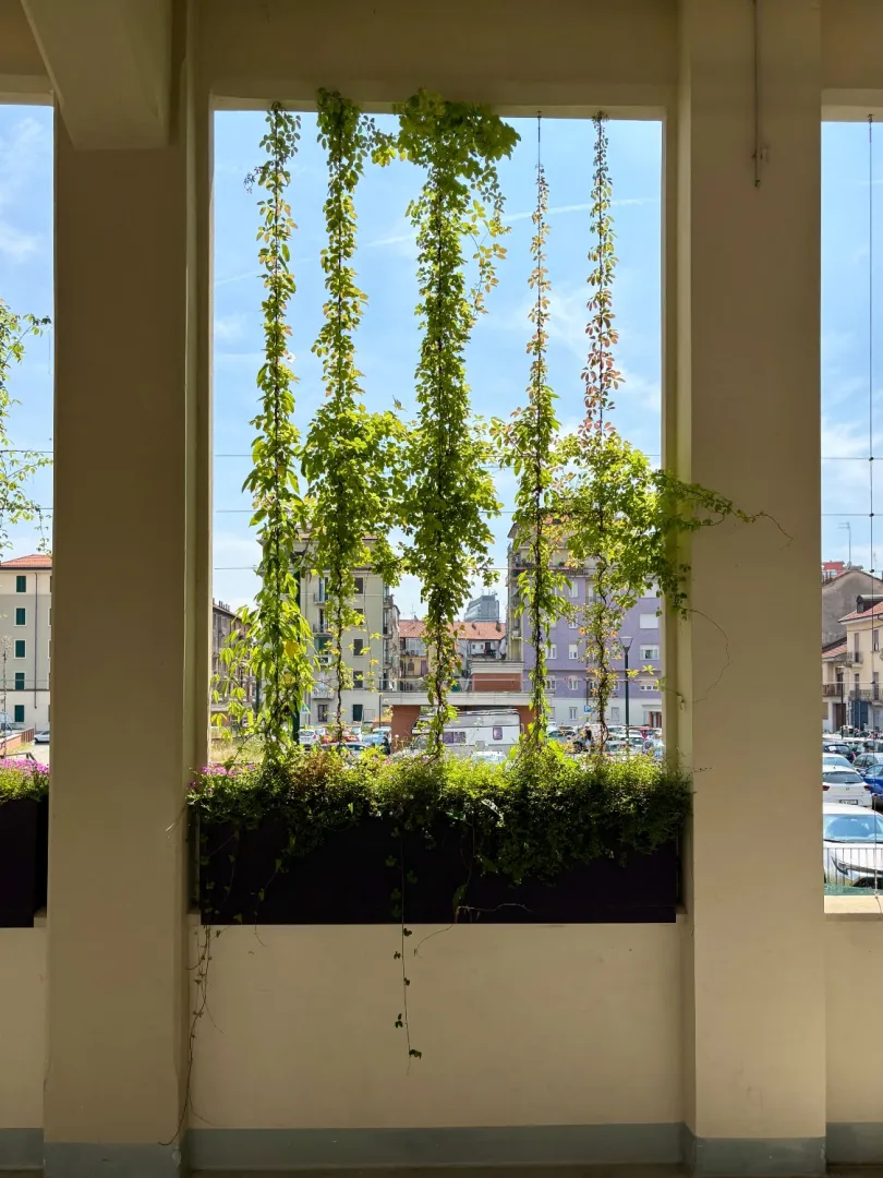 Lo spazio sociale di Via Cumiana 10 è una ex fabbrica che il Comune di Torino ha convertito a beneficio della comunità. A corollario dei lavori di ristrutturazione mancava la definizione dei finestroni di affaccio per i quali il Comune ha immaginato di creare delle pareti verdi e per questo ha indetto una gara alla quale siamo stati invitati a partecipare. Abbiamo immediatamente pensato di risolvere questa richiesta, ricostruendo, attraverso un intreccio di cavi di acciaio, il profilo dei serramenti precedentemente esistenti. sui quali diverse specie di rampicanti si possano sviluppare e, con il tempo, popolarli. Alla base di questo sistema abbiamo posizionato dei vasi in metallo che, riprendendo i colori delle grondaie, si armonizzano con lo spazio. Alla base dei vasi abbiamo messo delle piante tappezzanti. Abbiamo sviluppato il progetto in planimetria e con viste 3D che consentissero di visualizzare il risultato. Siamo fieri di aver vinto questa gare e grazie anche alle visualizzazioni abbiamo potuto lavorare di concerto con il Comune per definire ogni dettaglio prima di passare alla fase esecutiva e nel farlo, abbiamo anche provveduto a dare gli allacci acqua al sottostante orto sociale, un esperimento di grande e positivo impatto per tutto il quartiere e per questo, oltre al Comune, ringraziamo le associazioni che con tanta dedizione contribuiscono a fare di questo ex luogo un luogo vivo e vivace che contribuisce attivamente al benessere di tutti. Vasi Rota Fioriere Milano | Cavi Garelli-Inox Genova |